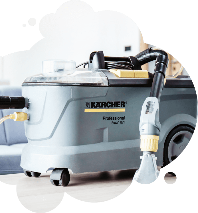 Tento stroj německé značky Kärcher se postará o hloubkové čištění textilních povrchů extrakční metodou. Tohoto našeho silného a šikovného pracanta používáme při čištění sedaček, křesel a jiného čalouněného nábytku. Nastříká šetrný čistící přípravek, pořádně propláchne látku do hloubky a velkým tahem odsaje všechnu přebytečnou vodu i s nečistotami a čistícími přípravky.